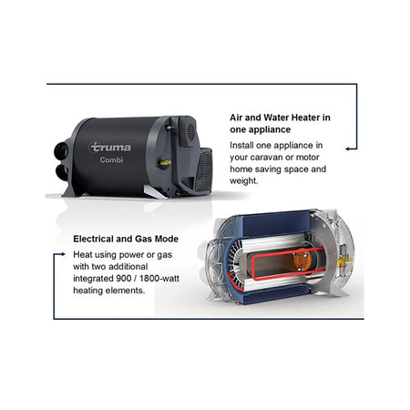 Enjoy twice the comfort with Truma Combi 2E - space and water heater in one appliance. The 2000w heater provides comfortable warmth in your vehicle in just a few minutes. It also heats the water that you need for showering, washing dishes, or washing your hands. And the best thing about it, you only have to install one appliance in your caravan or motor home. This saves space and weight.