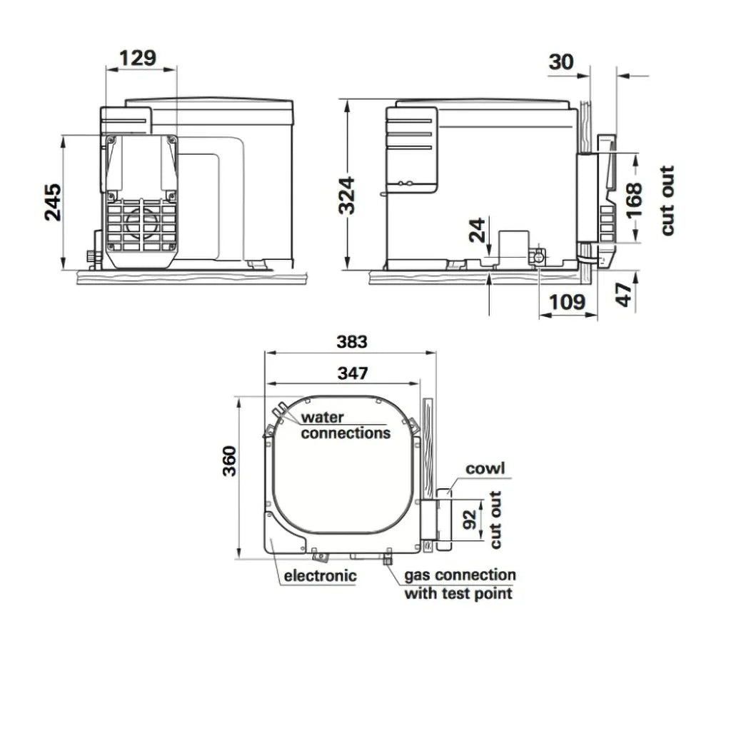 - Space saving dimensions (same foot print like the Boiler) and less weight than competitor products.