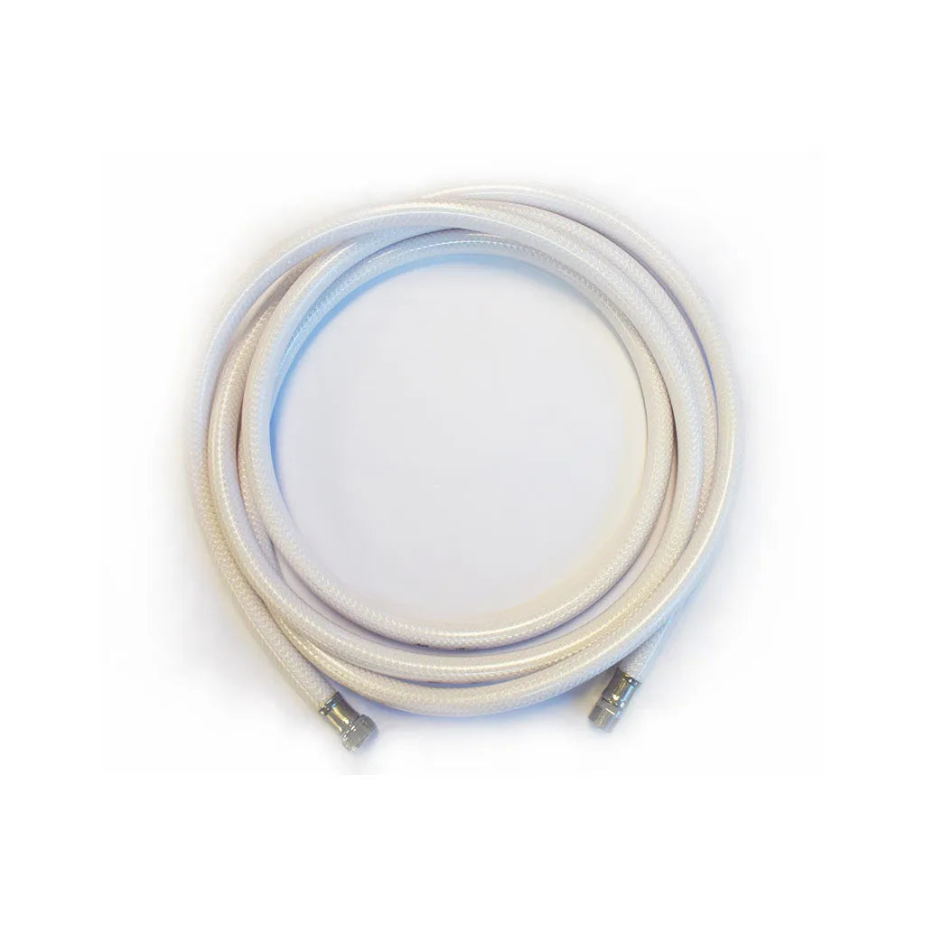 Replacement white shower hose, with chrome fittings threaded male & female.